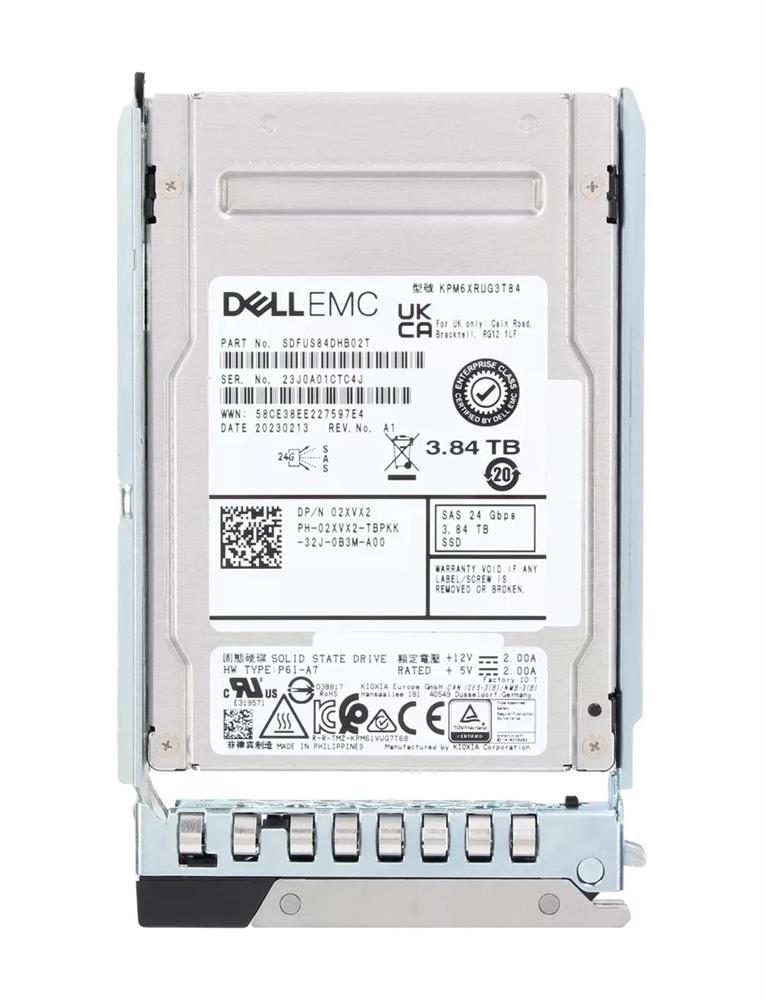 2XVX2 | Dell 3.84TB SAS 24Gbps 512e ISE Read Intensive 2.5" Solid State Drive with Tray for 14g 15g And 16g PowerEdge Server